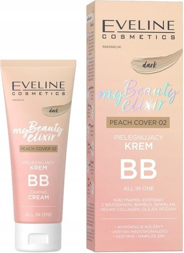 Ten niezwykły krem BB My Beauty Elixir Peach firmy Eveline rewolucjonizuje pielęgnację dzięki swojej wszechstronnej formule. Zawiera niacynamid, który odmładza i nawilża skórę, ekstrakt z brzoskwini wygładzający i odżywiający cerę oraz skwalan i wegański kolagen dodające jej jędrności i utrzymujące optymalny poziom nawilżenia.