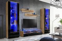 Meblościanka Czarny/Dąb Wotan LED RGB Meble RTV – Zestaw Mebli