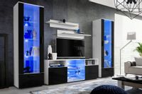 Pan Igiełka Meblościanka LED RGB Czarny Biały Dąb Wotan Zestaw Mebli