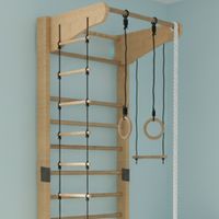 Absolutna łatwość montażu zestawu. Tata poradzi sobie z nim sam! Dostarczane drabinki są w formie złożonej, jako dwie zmontowane półdrabinki gotowe do nałożenia jedna na drugą. Forma konstruktora pozwala dołożyć dodatkowe elementy typu lina, koła gimnastyczne czy huśtawka. Osoby, które nie mogą się zdecydować gdzie taki zestaw zamontować – zawsze mogą wybrać wersję montowaną rozporowo między sufitem i podłogą, co nie wymaga wiercenia otworów w ścianie i pozwoli w przyszłości bezproblemowo przenieść drabinkę na nowe miejsce. Wersja rozporowa także dopasowuje się do wysokości mieszkania. Najmniejszy zestaw zajmuje zaledwie około 0,6 m2. Nasz zestaw Kometa-1 z powodzeniem został zamontowany w pokoju o powierzchni 10,5 m2.