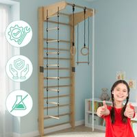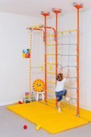 Wiele lat doświadczenia pozwoliły producentowi przewidzieć wszystko. Do zestawu można dobrać ogranicznik wchodzenia na drabinkę, na wypadek jeśli w domu jest mniejsze dziecko, które już garnie się do wchodzenia na wyżyny! Dla pomieszczeń wyższych niż 273 cm producent przewidział element wydłużający nawet o dodatkowe 52 cm. Ciekawe elementy składowe zestawów nie pozwolą dzieciom się nudzić: pajęczyna, huśtawka, lina, wężołaz i inne.